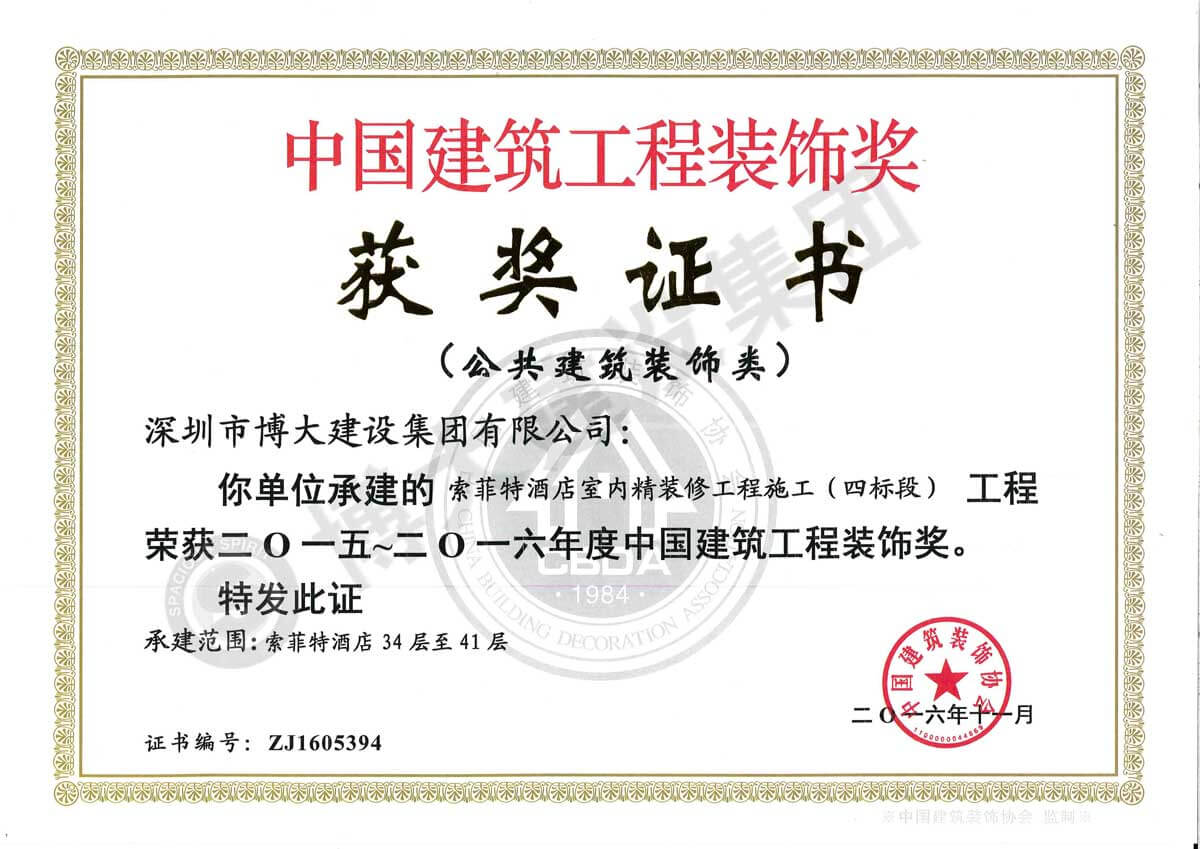 中國建筑工程裝飾獎(jiǎng)(索菲特酒店室內(nèi)精裝修工程-裝飾)