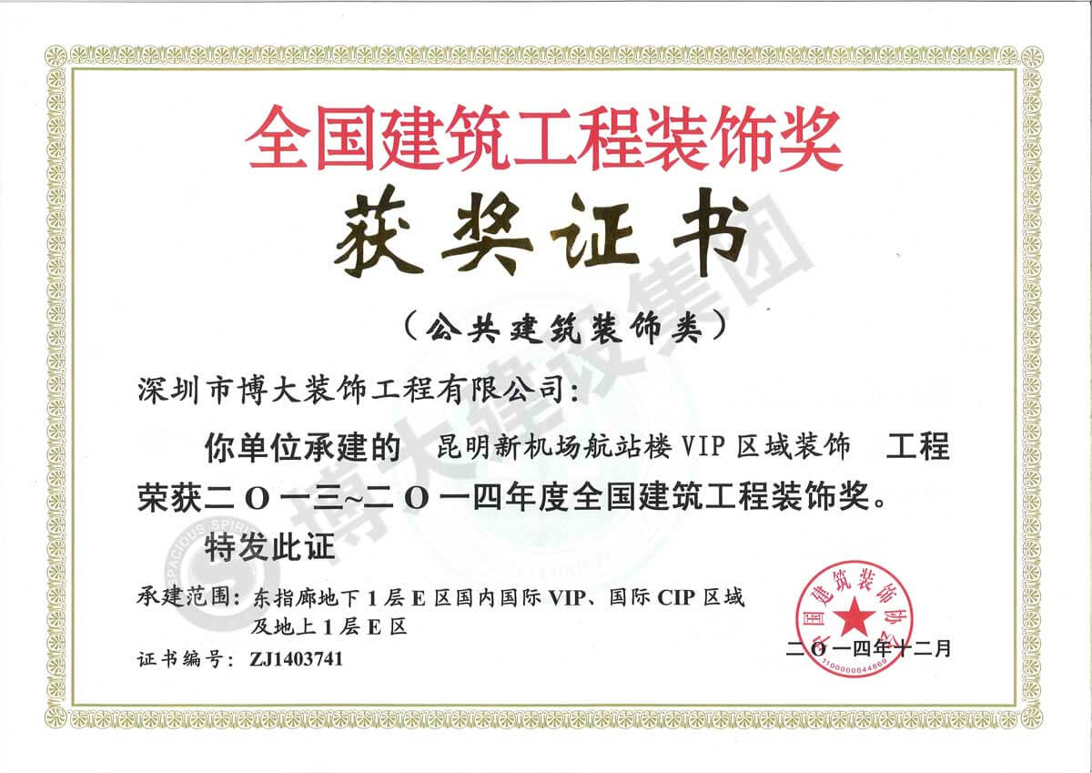 中國建筑工程裝飾獎(jiǎng)(昆明新機(jī)場(chǎng)航站樓VIP-裝飾)