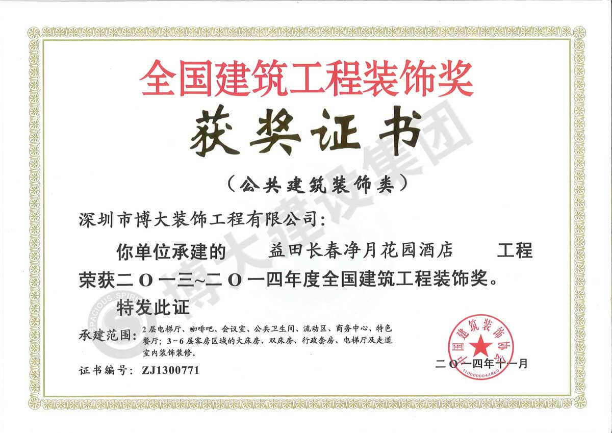 中國建筑工程裝飾獎(jiǎng)(益田長(zhǎng)春凈月花園酒店-裝飾)