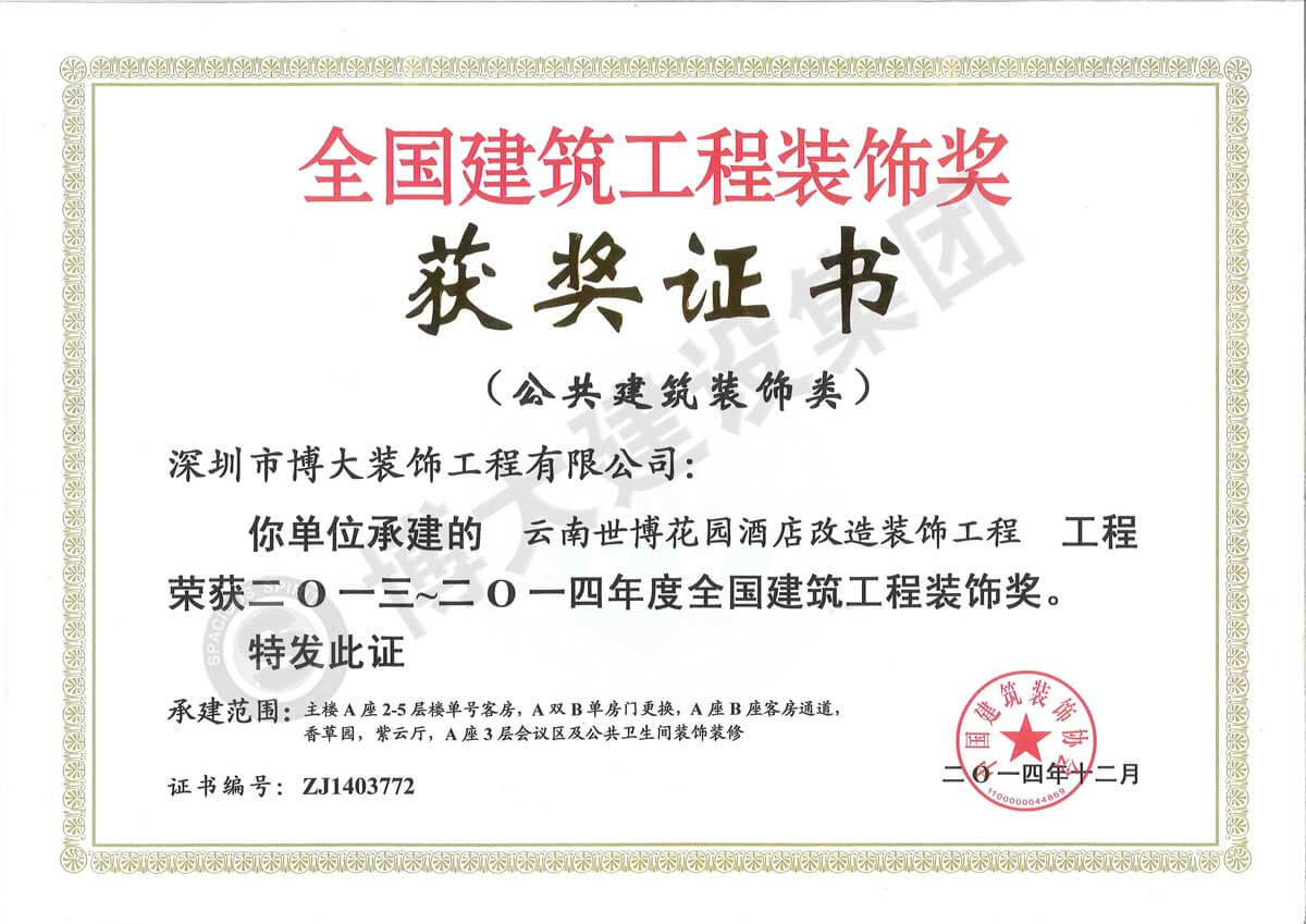 中國建筑工程裝飾獎(jiǎng)(云南世博花園酒店-裝飾)