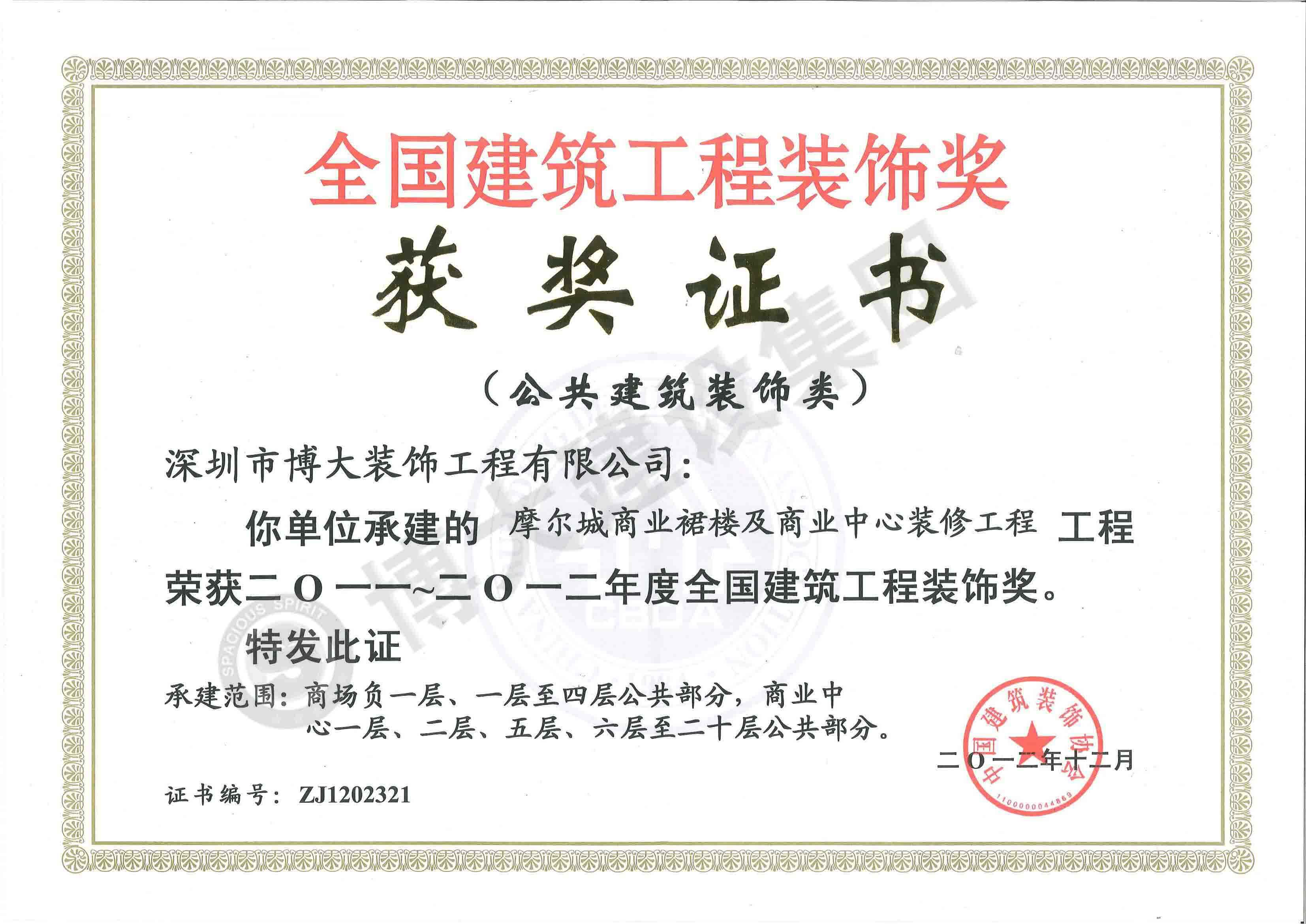 中國建筑工程裝飾獎(jiǎng)(摩爾城-裝飾)