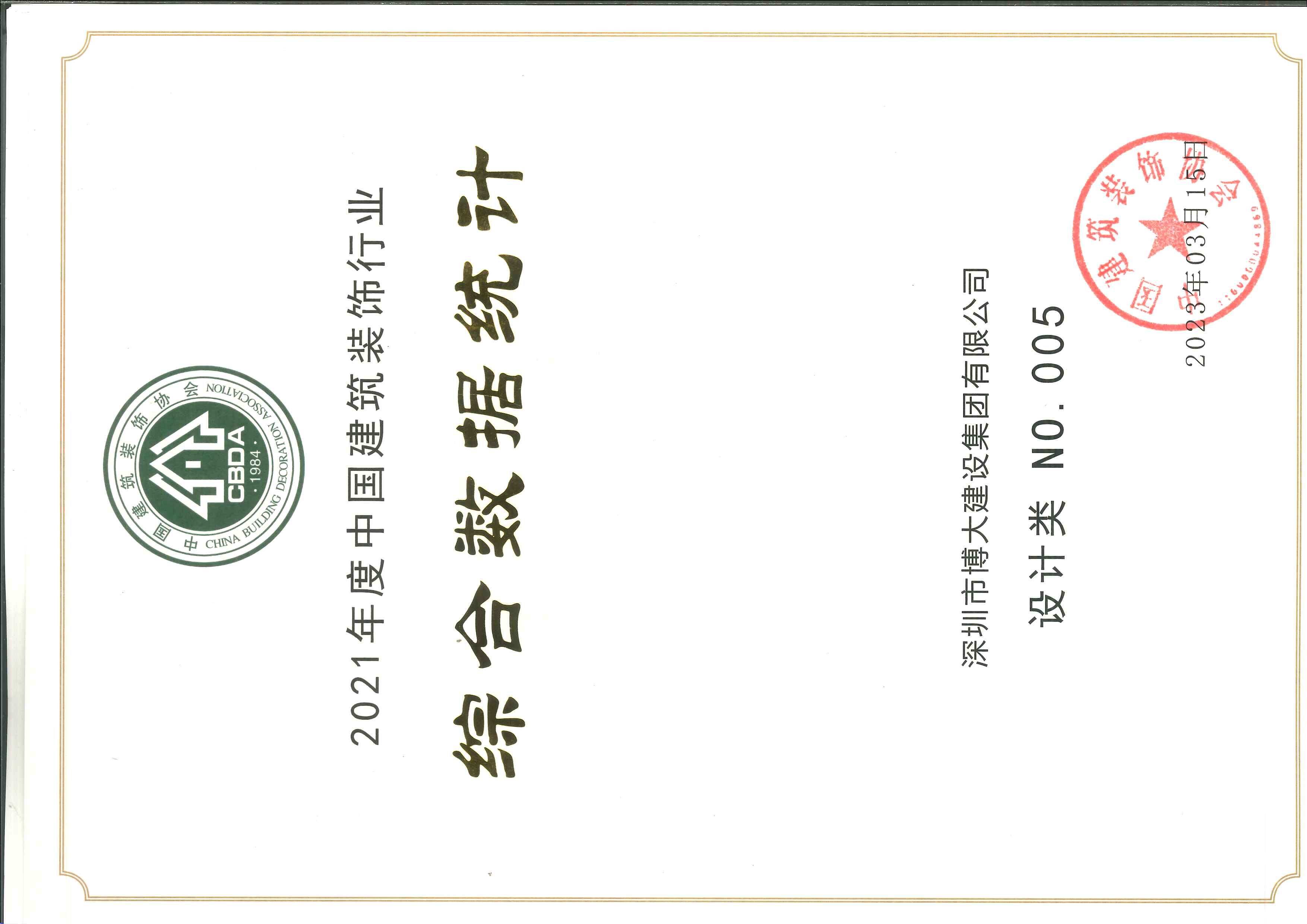 2021年度中國建筑裝飾行業(yè)百強設(shè)計類第五名