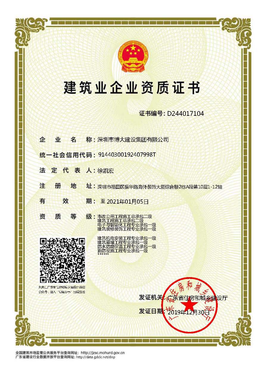 博大建設(shè)集團(tuán)作為行業(yè)最具發(fā)展活力的領(lǐng)軍企業(yè),近年來發(fā)展速度迅猛,2019年繼續(xù)保持穩(wěn)步增長,業(yè)績過百億。在各級(jí)領(lǐng)導(dǎo)的關(guān)懷和全體家人的共同努力下,集團(tuán)資質(zhì)建設(shè)取得新的進(jìn)展,榮獲6項(xiàng)建筑資質(zhì)!