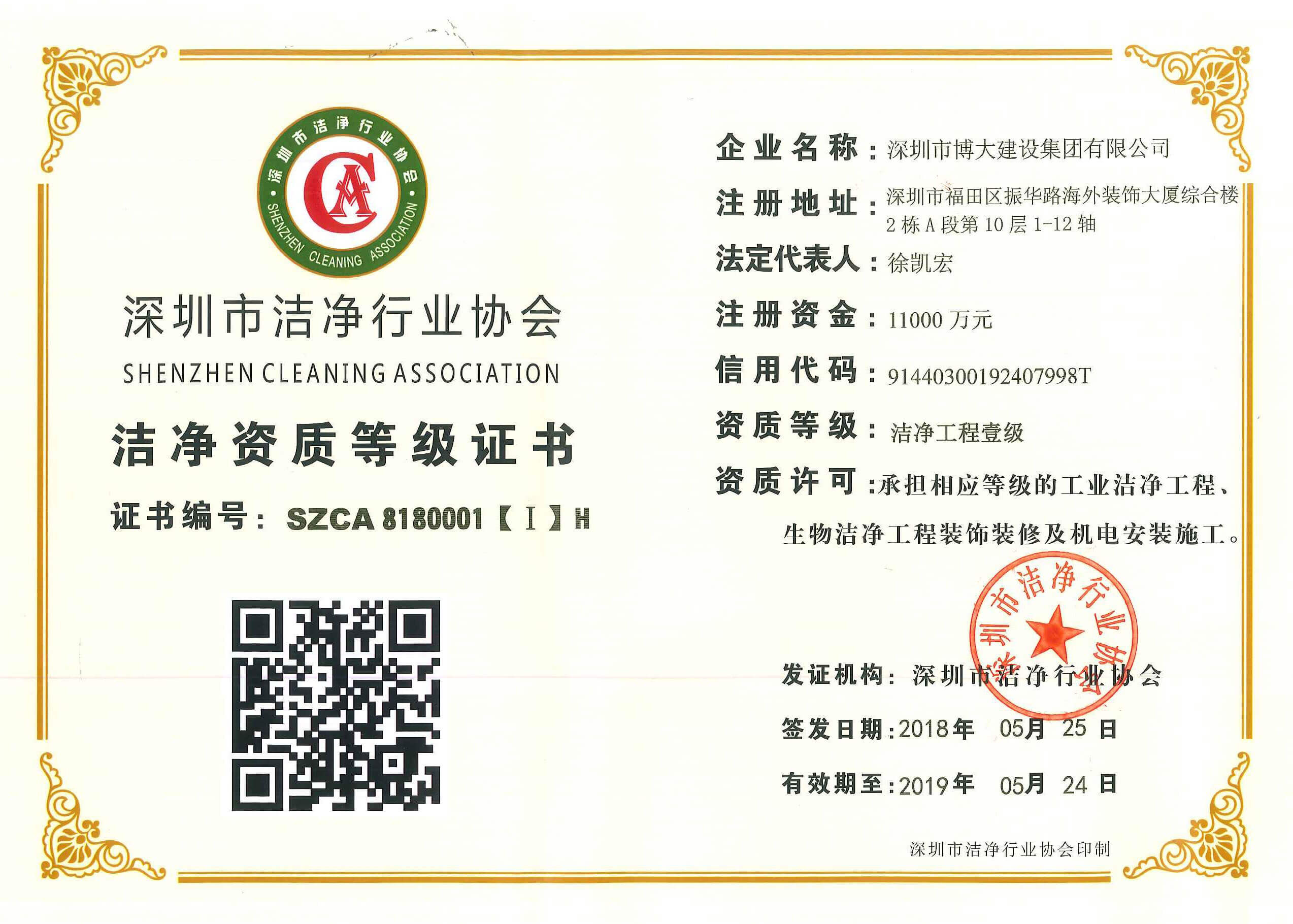博大建設集團是行業(yè)最具發(fā)展活力的領軍企業(yè),各項事業(yè)突飛猛進,不斷得到社會各界的關注和認可。集團資質建設又有新突破,順利獲得潔凈工程壹級資質。繼獲得展覽工程企業(yè)壹級資質,展覽陳列工程設計與施工一體化壹級資質之后,這是博大本月內獲得的又一個壹級資質。夢想有多高,收獲就有多大,博大平臺資質建設速度前所未有。