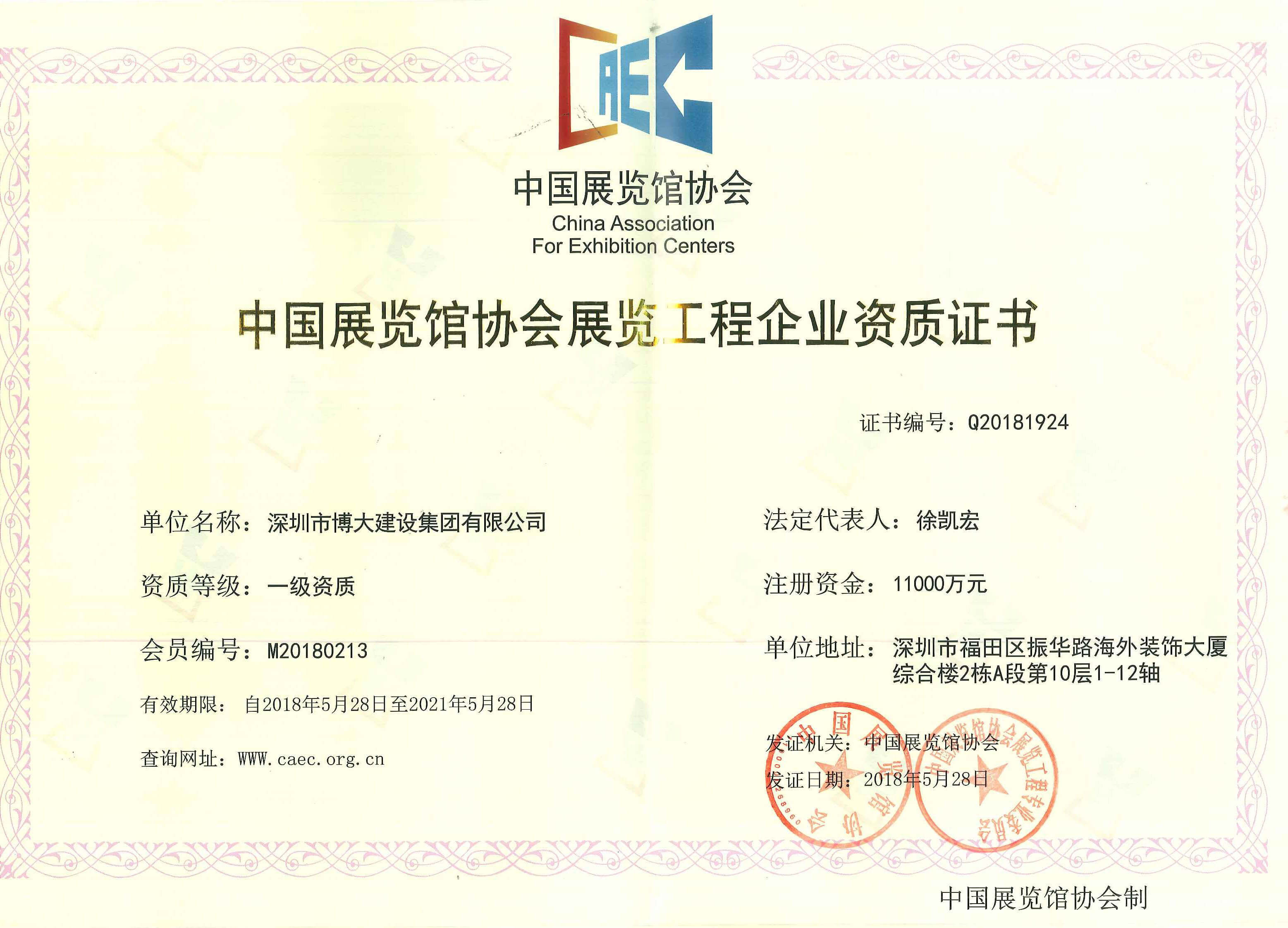 博大建設集團作為行業(yè)最具發(fā)展活力的企業(yè),近年來以迅猛的成長速度,得到了越來越多的關注和認可。在各級領導的關懷和全體家人的共同努力下,集團資質建設取得新的進展:獲得展覽工程企業(yè)一級資質,展覽陳列工程設計與施工一體化一級資質。