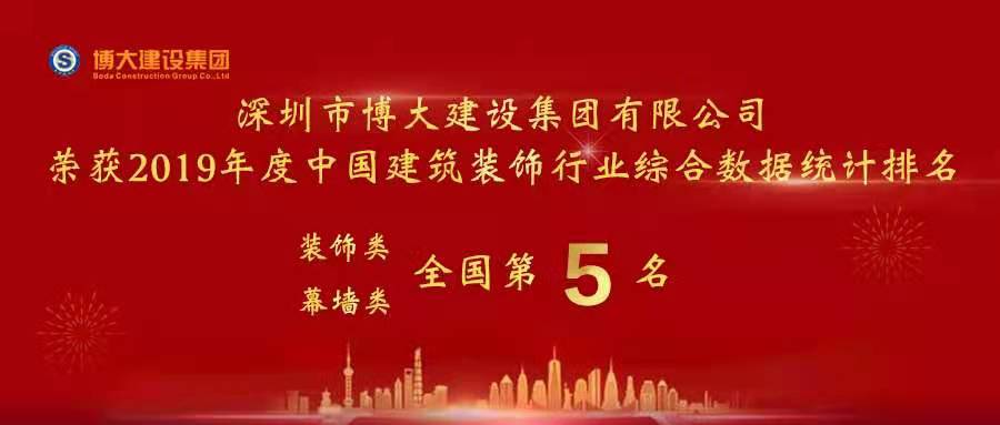 熱烈祝賀博大躍居中國建筑裝飾行業(yè)百強第五名!