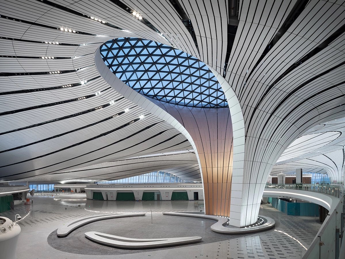 北京大興機場航站樓建設面積達140萬平方米,是世界上規(guī)模最大的單體航站樓。首次采用“放射”狀五指廊構(gòu)型。中心點到最遠端是600米,走路最多8分鐘就能登機。