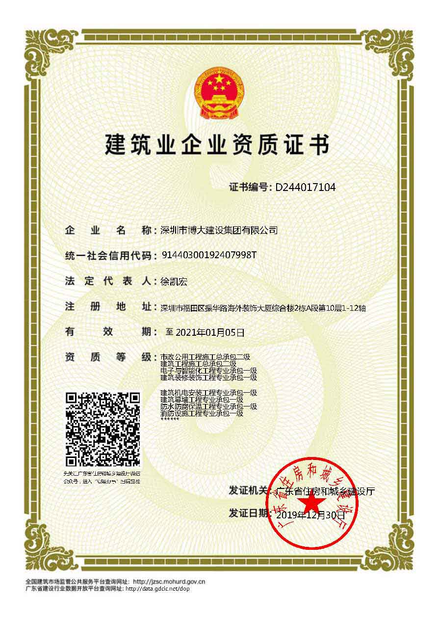 博大建設(shè)集團(tuán)作為行業(yè)最具發(fā)展活力的領(lǐng)軍企業(yè),近年來發(fā)展速度迅猛,2019年繼續(xù)保持穩(wěn)步增長,業(yè)績過百億。在各級領(lǐng)導(dǎo)的關(guān)懷和全體家人的共同努力下,集團(tuán)資質(zhì)建設(shè)取得新的進(jìn)展,榮獲6項建筑資質(zhì),具體如下: