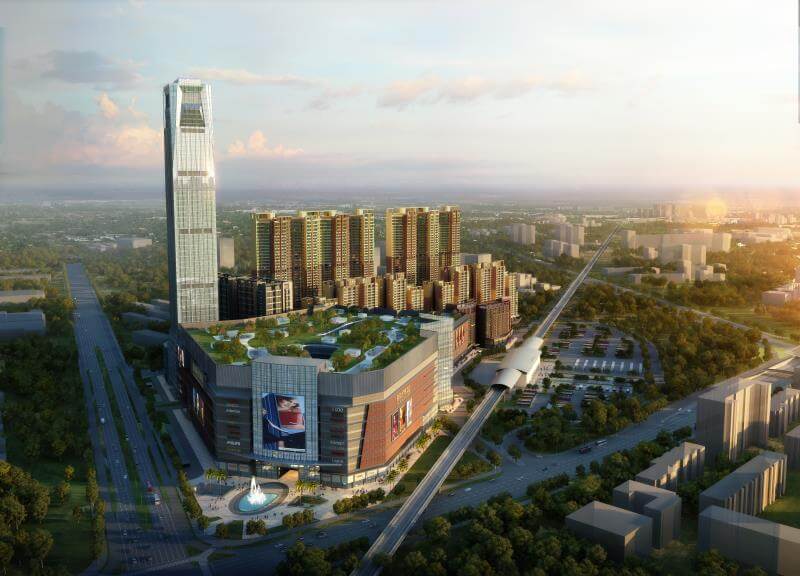 170米高度,普寧國際商貿(mào)中心位于廣東省普寧市,幕墻面積13.5萬平方米。項目采用了玻璃幕墻、鋁板幕墻、石材幕墻、鋁合金門窗、雨篷等。