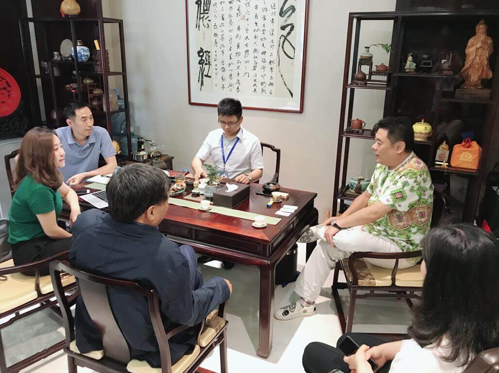 2018年5月16日,中裝協(xié)副會(huì)長(zhǎng)陳新一行蒞臨我司調(diào)研指導(dǎo)工作,董事長(zhǎng)徐凱宏熱情接待。