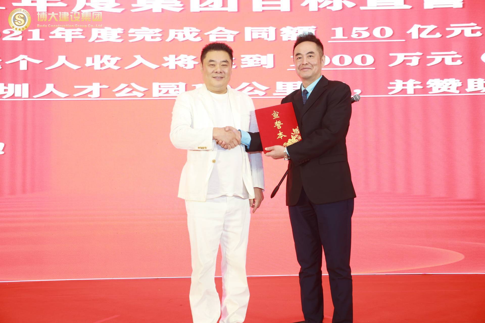 各戰(zhàn)區(qū)、中心、工廠負(fù)責(zé)人逐一上臺,在全體合伙人的見證下對2021年的部門目標(biāo)和個人收入目標(biāo)莊嚴(yán)宣誓,洪董代表集團(tuán)對股東宣誓!