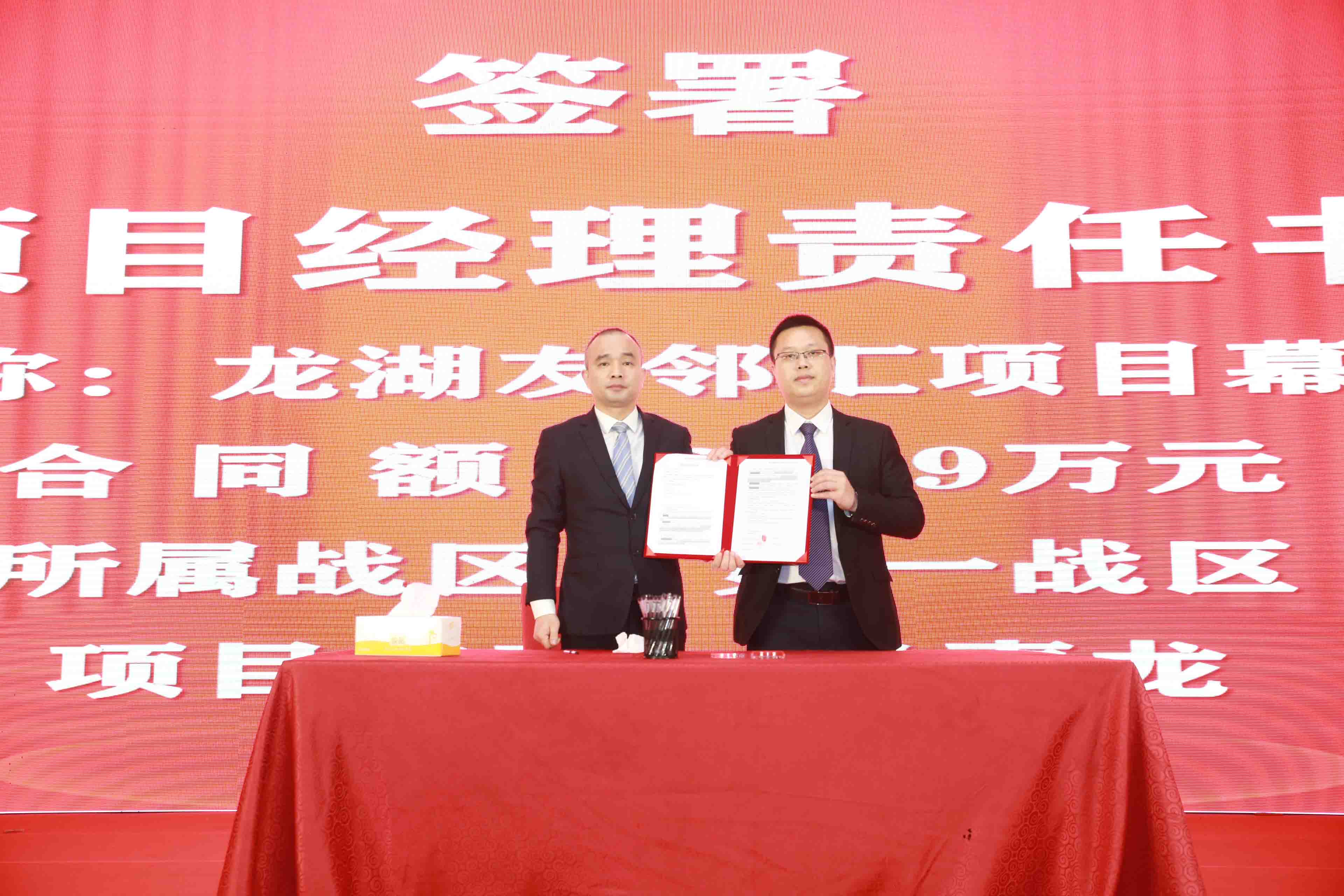 百舸爭流千帆競,莊嚴(yán)宣誓奮者先。2021年項目經(jīng)理簽約儀式、目標(biāo)宣誓大會現(xiàn)場莊嚴(yán)神圣,20位項目負(fù)責(zé)人作為集團(tuán)新開工項目代表與工程管理中心總經(jīng)理何學(xué)軍、副總經(jīng)理徐朝華簽訂《項目經(jīng)理責(zé)任書》,強(qiáng)化履約主體責(zé)任。