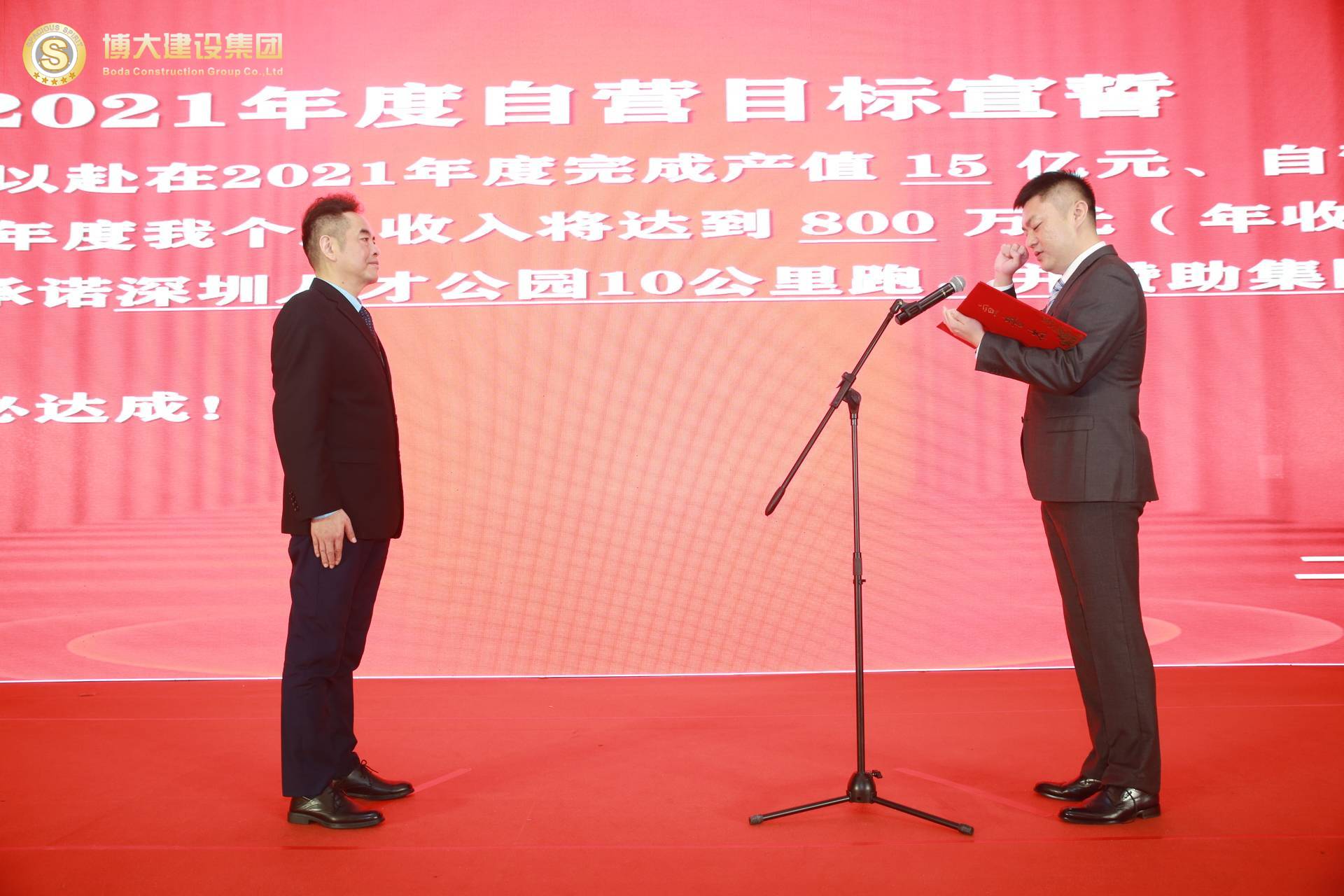 開局即決戰(zhàn),起步即沖刺。博大建設(shè)集團(tuán)于2月24日晚隆重召開2020年優(yōu)秀表彰大會暨2021年目標(biāo)宣誓大會,博大將士吹響攻堅決勝“沖鋒號”!創(chuàng)始人徐凱宏、董事長洪宇、副董事長黃河、總裁李朕鴻、常務(wù)副總裁沈雁飛等董事會領(lǐng)導(dǎo)盛裝出席,與來自全國各地的400余名員工共同見證充滿正能量的年度盛典!