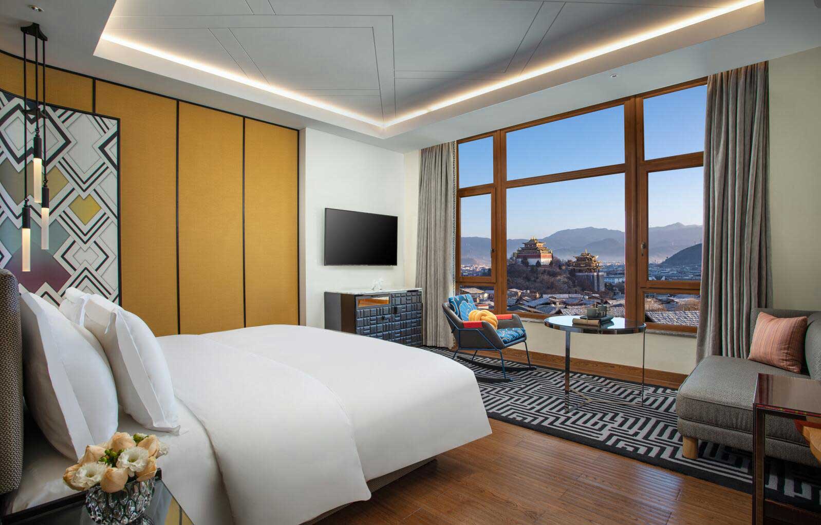 房間設(shè)計從藏地文化中汲取靈感,寫意回溯香格里拉鄰間故事,打造兼具民族風(fēng)韻和現(xiàn)代舒適的下榻空間,點綴精挑細選的工藝品及特色壁畫,房間的角落和細節(jié)處處可見充滿本地風(fēng)情的鄰間文化。開窗見景,入室賞藝,高品質(zhì)客房設(shè)施營造了引人入勝的旅居氛圍。