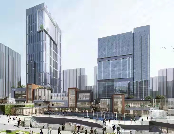 項目位于重慶市渝北區(qū)兩江國際商務(wù)中心,設(shè)計理念源于山城劇場的概念,將商業(yè)打造成開放式的街區(qū)。博大負責1號樓、2號樓、商業(yè)裙樓的幕墻施工,幕墻系統(tǒng)包含框架式玻璃幕墻、夾具式玻璃幕墻、鋁板幕墻、玻璃雨篷等。