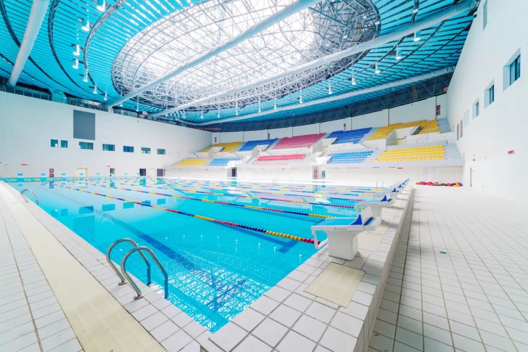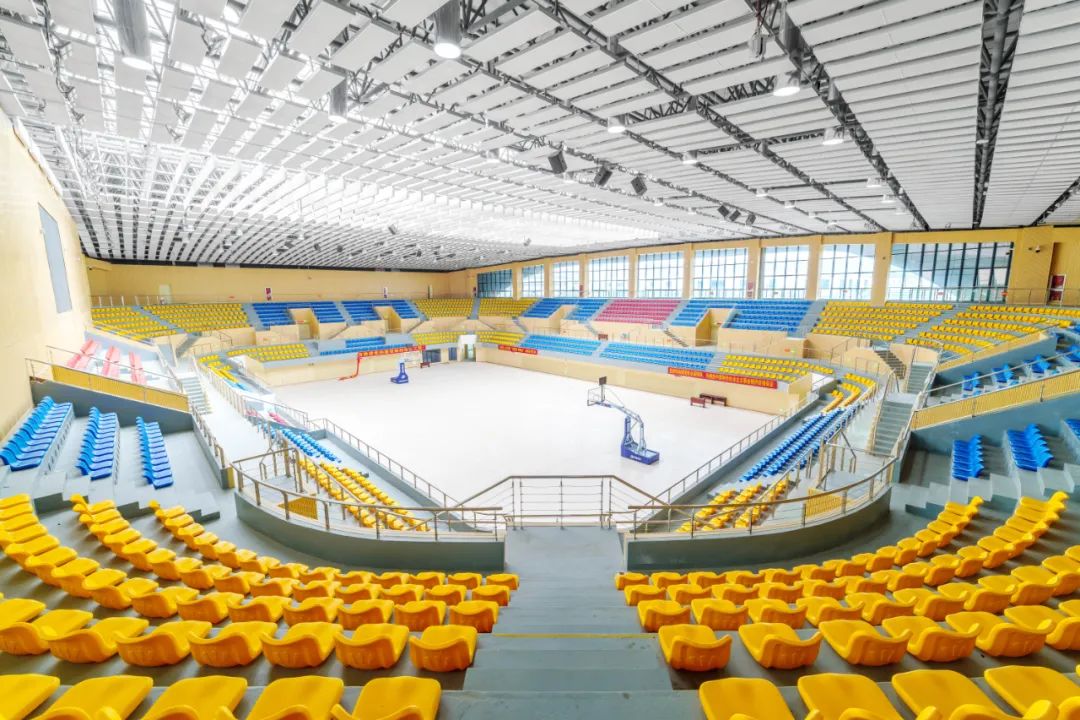博大負(fù)責(zé)的施工區(qū)域涵蓋體育館、運(yùn)動場、游泳館、人防地下室,聲學(xué)吸音等全部裝飾工程。其中運(yùn)動場東、西看臺兩側(cè)均為弧形造型,現(xiàn)場工期緊、任務(wù)重,交叉作業(yè)多,協(xié)調(diào)難度大,配合要求高。