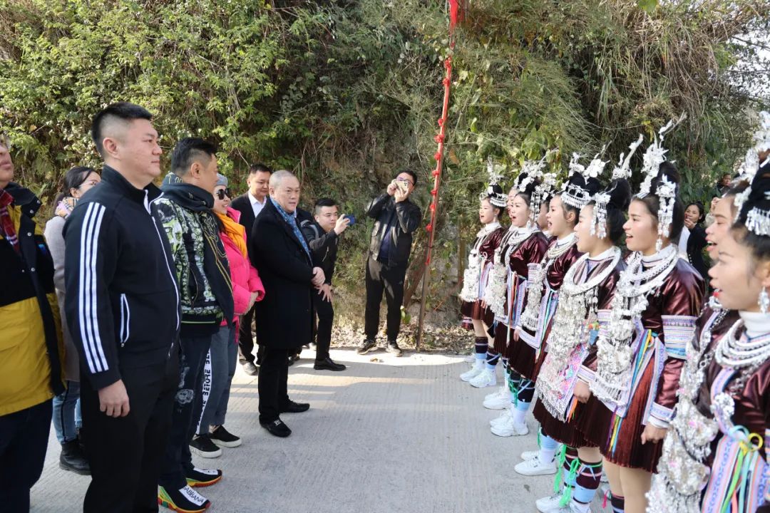 圖 | 當(dāng)?shù)囟弊迦罕娨远闭Z唱山歌儀式歡迎博大董事會一行
