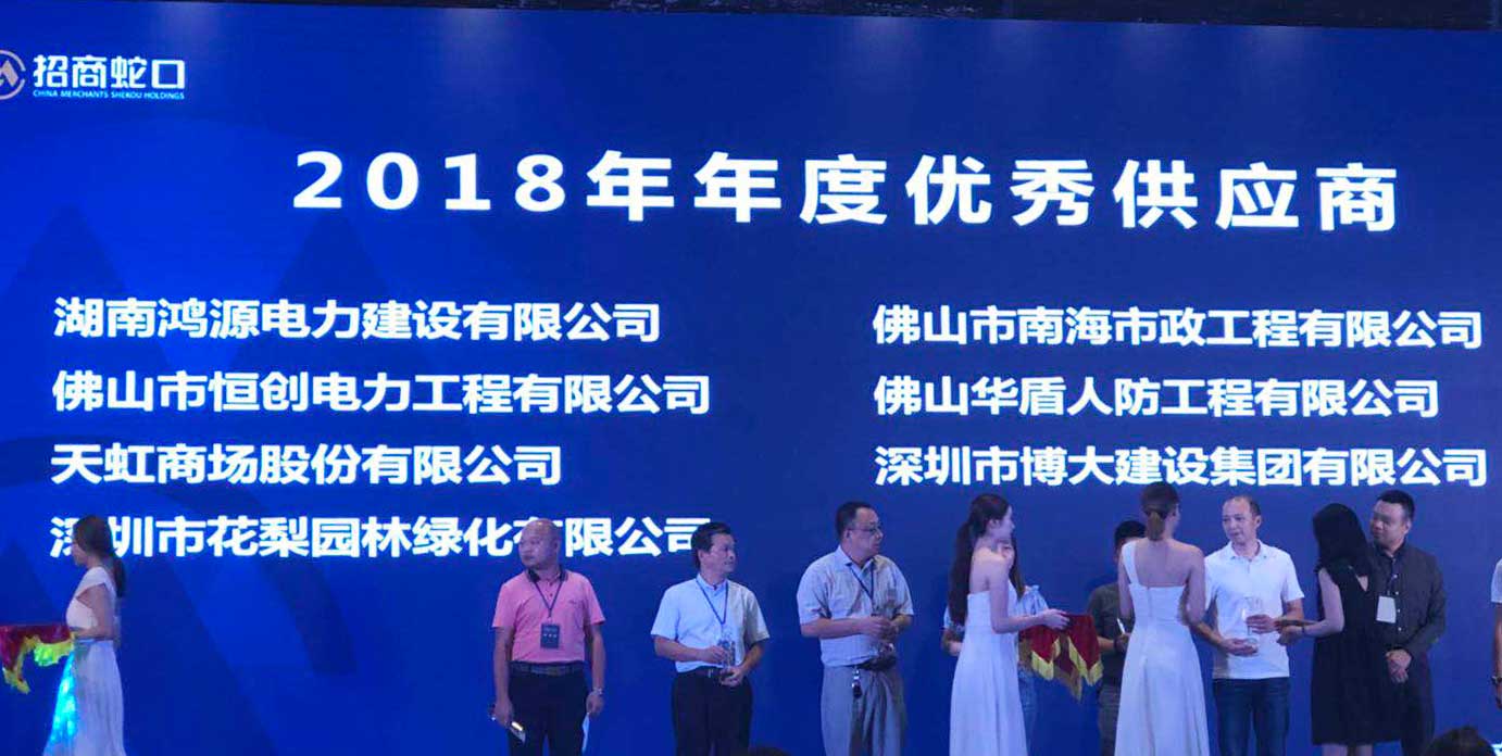 2018年9月,招商蛇口佛山公司舉行2018年度供應商大會,深圳市博大建設集團有限公司憑借過硬的工程質(zhì)量、嚴格的工期保障、讓顧客有幸福感的服務態(tài)度,榮獲招商蛇口佛山公司“2018年度優(yōu)秀新供應商獎”。