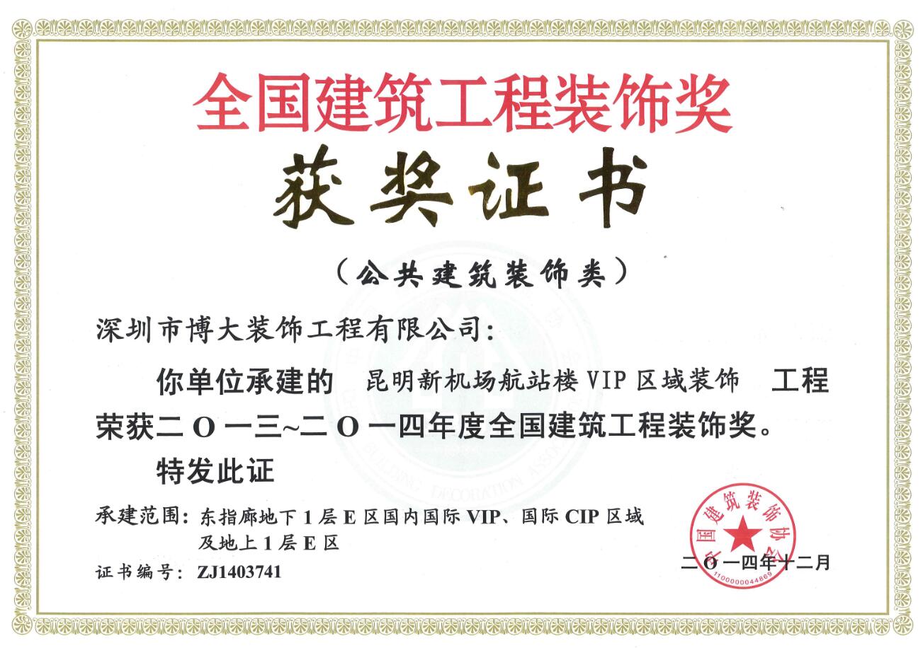 博大以精益求精的工匠精神成就大國(guó)品質(zhì),榮獲中國(guó)建筑裝飾最高獎(jiǎng)——魯班獎(jiǎng)、中國(guó)建筑裝飾工程獎(jiǎng),博大被云南省委、省政府授予“先進(jìn)集體嘉獎(jiǎng)”榮譽(yù)稱(chēng)號(hào)。